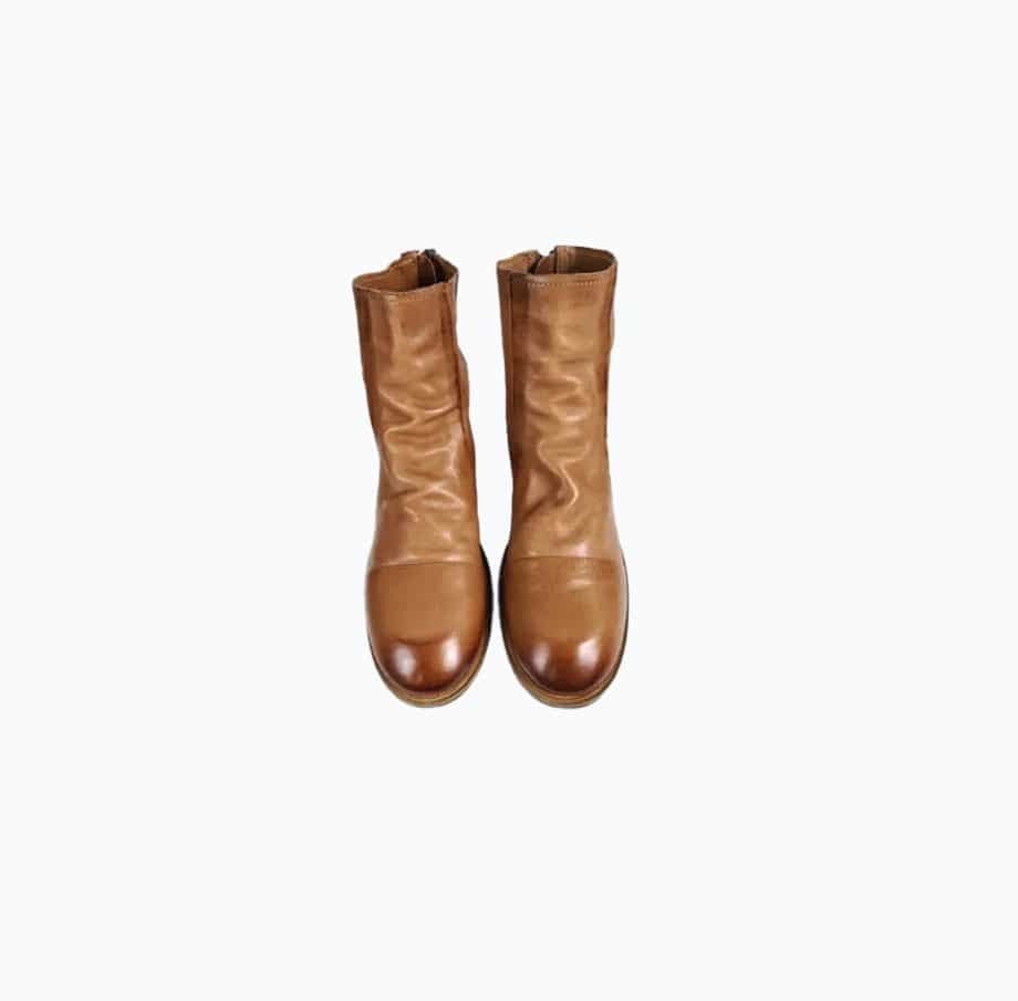 Mot. auliniai batai, rudos spalvos, užsegimas užtrauktuku, apvali noselė, klasikinio stiliaus.