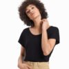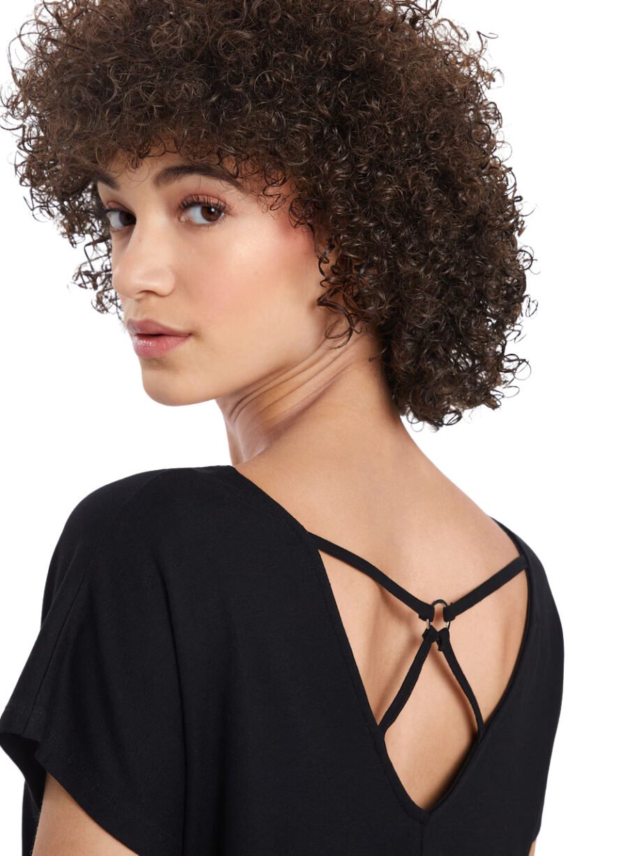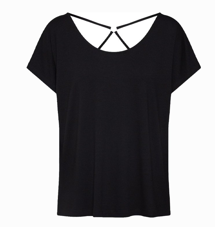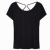 Mot. palaidinė, juodos spalvos, trumpomis rankovėmis, apvali iškirptė, tiesaus kirpimo, iškiptė nugaroje.