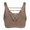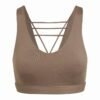 Mot. sportinė liemenėlė, smėlio spalvos, išimamos pagalvėlės, spausdintas logotipas.