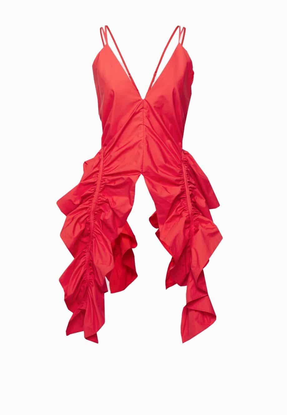 Mot. palaidinė, raudonos spalvos, be rankovių ant šleikučių, iškirptė nugaroje, reguliuojamo ilgio dirželiai, V formos iškirptė.