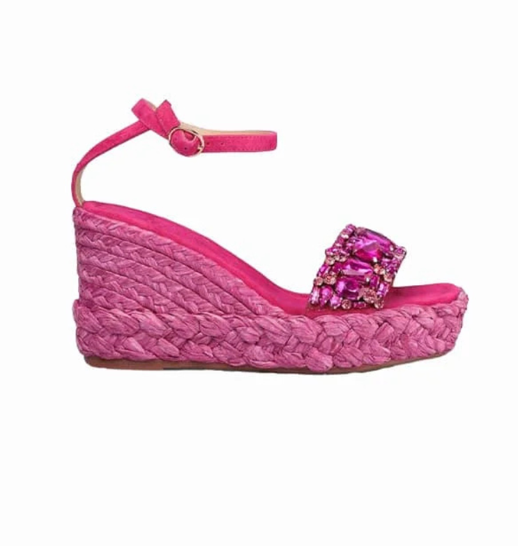 Mot. aukštakulniai, rožinės spalvos, ant platformos, kvadratinė bato nosis, pintas padas, krištoliniai akmenys. Sezonas- Vasara.