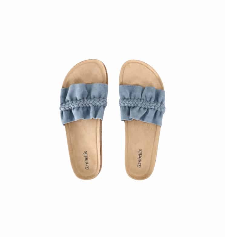 Mot. šlepetės, šviesiai mėlynos spalvos, įspiriamos, atviros, apvali noselė, lygus padas, kasdieninės vasariškos.