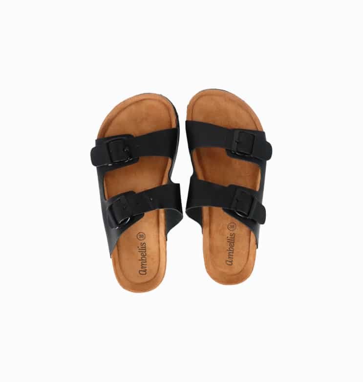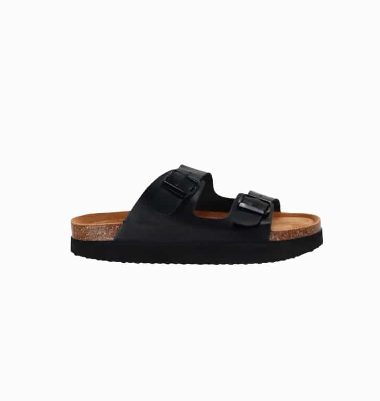 Mot. šlepetės, juodos spalvos, apvali batų nosis, be užsegimo, su platforma.