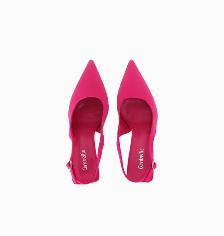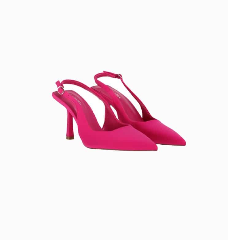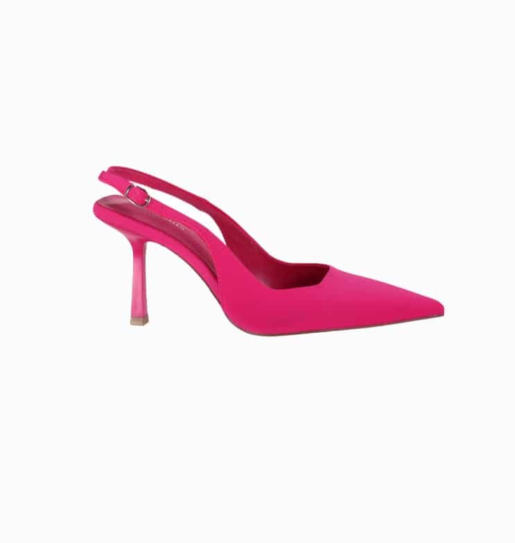 Mot. aukštakulniai bateliai, rožinės spalvos, smailus batų priekis, atvira pakulnė, smailiakulnė avalynė.