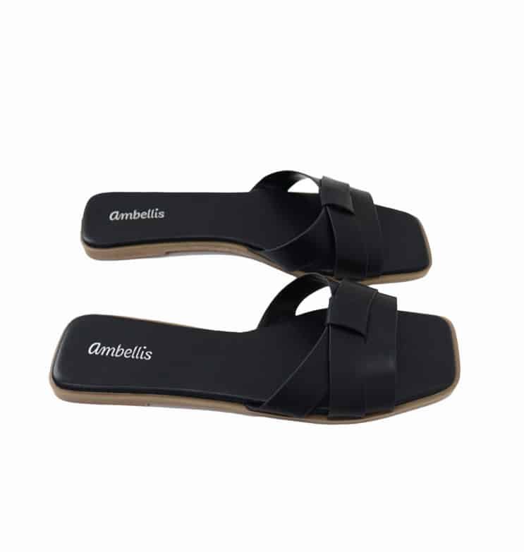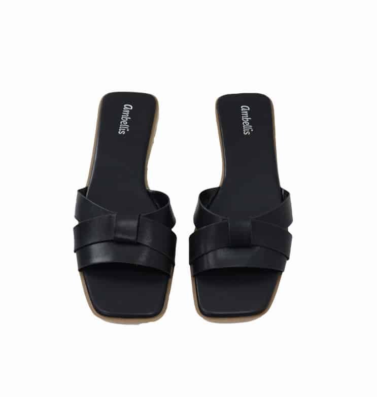 Mot. šlepetės, juodos spalvos, plokščiapadės, noselė kvadratinė, be užsegimo, vasaros sezonui.