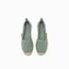 Mot. espadrilės, turkio spalvos, apvali batų nosis, plokščias padas, be užsegimo, vienspalvio rašto, elastinė juosta.