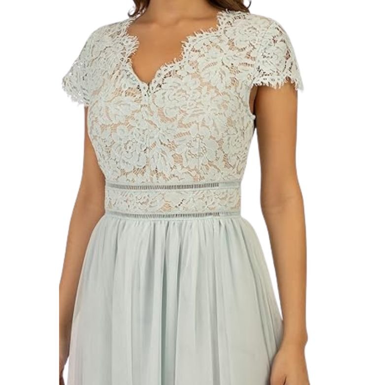 Mort, proginė suknelė. Trumpomis rankovėmis, V formos iškirpte, nugaroje užtrauktukas.