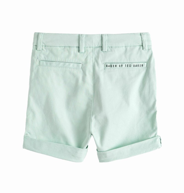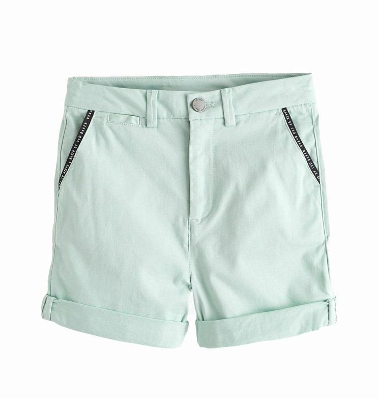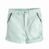 Vaik. šortai, šviesiai žalios spalvos, užsegimas užtrauktuku ir sagute, užpakalinės ir šoninės kišenės, diržo kilpos.