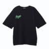 Unisex marškinėliai, juodos spalvos, trumpomis rankovėmis, apvali iškirptė, logotipo spauda, laisvo kirpimo, rankovės ilgis iki alkūnės.