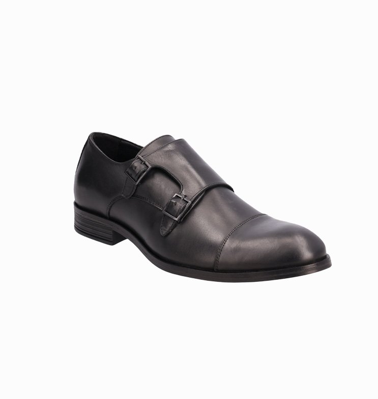 Vyr. batai, juodos spalvos, apvali batų nosis, užsegimas sagtimis, elegantiško stiliaus.