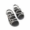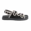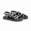 Mot. basutės, juodos spalvos, apvali ir atvira batų nosis, plokščias padas, užsegimas dirželiu ir sagtimi.