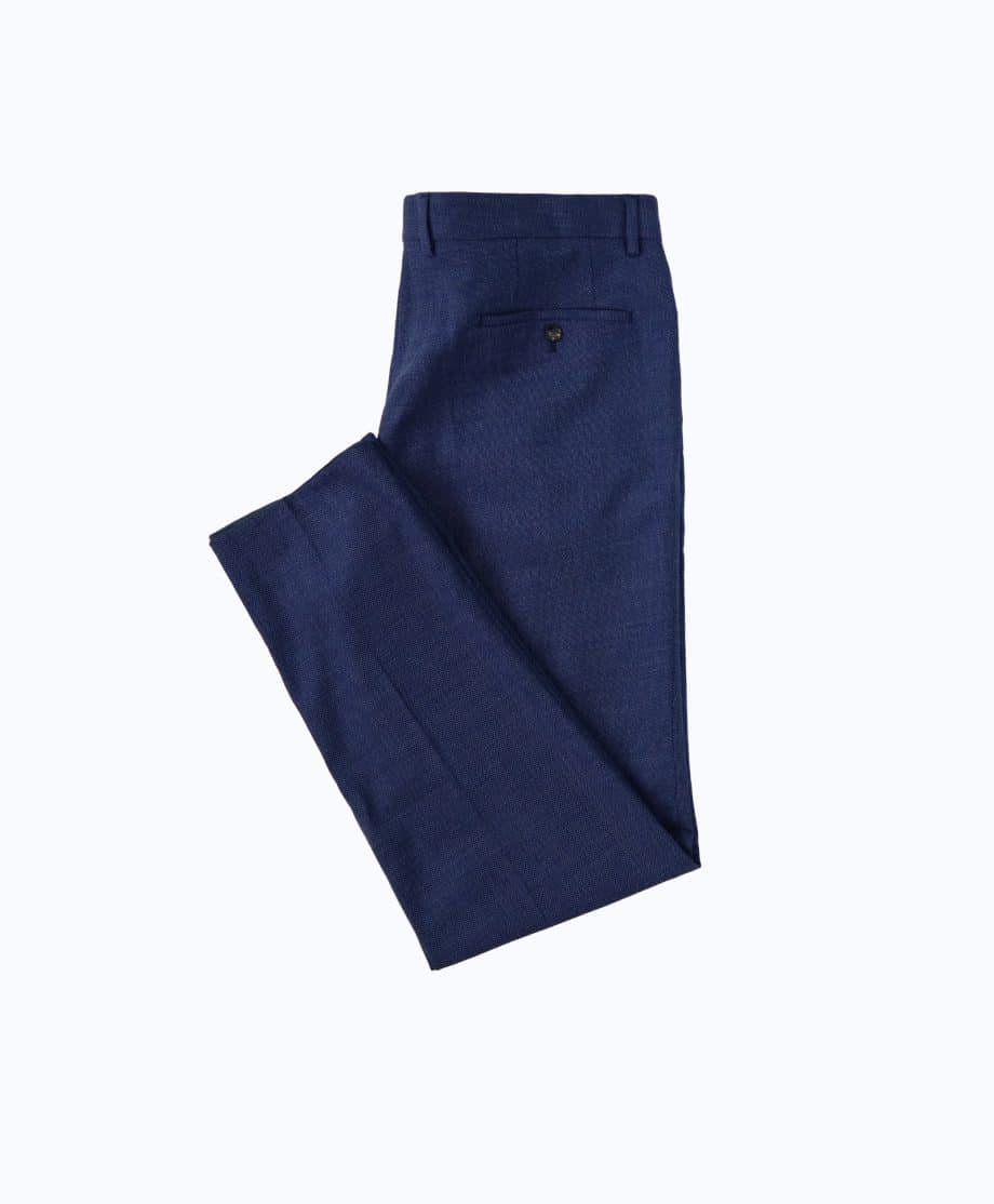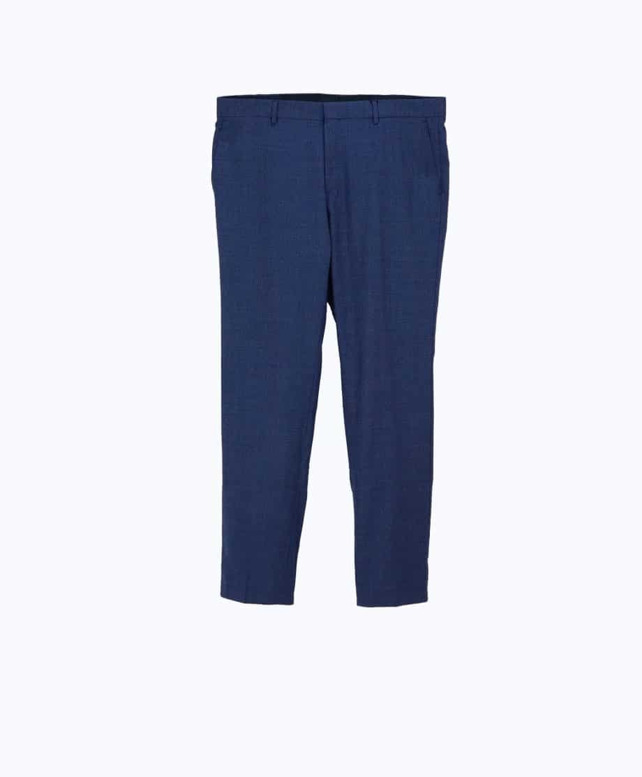 Vyr. kelnės, mėlynos spalvos, diržo kilpos, šoninės kišenės, užsegimas saga ir užtrauktuku.