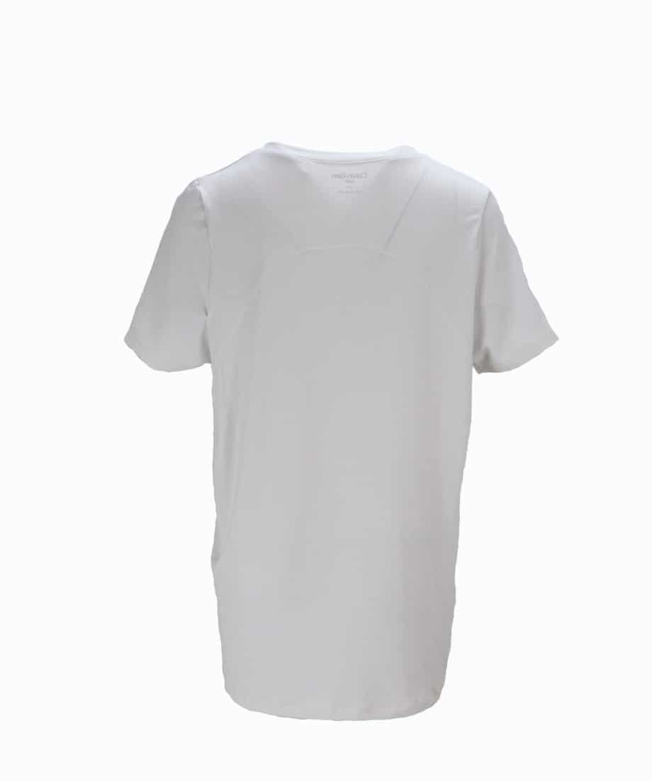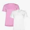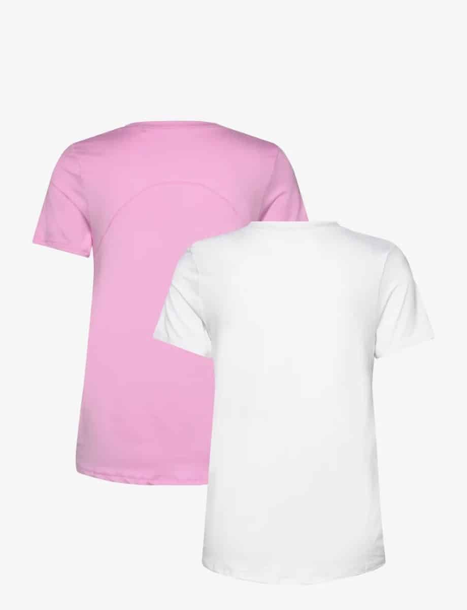Mot. marškinėliai, baltos/ rožinės spalvos, trumpomis rankovėmis, V formos iškirptė, tiesaus kirpimo. Pakuotėje 2vnt. marškinėliu.
