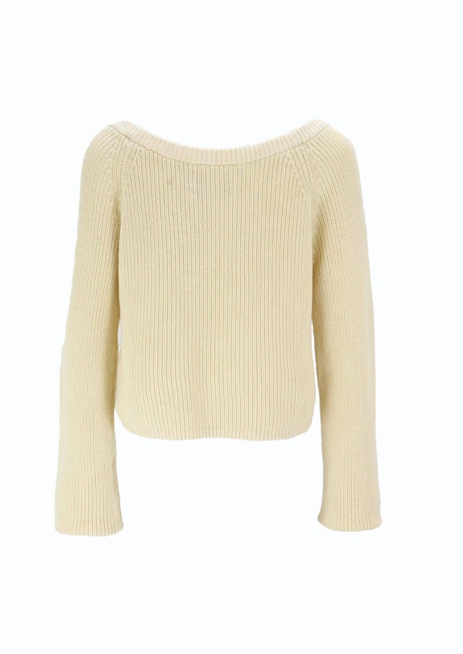 Mot. megztinis, smėlio spalvos, ilgomis rankovėmis, apvalus kaklas, trumpas kirpimas.