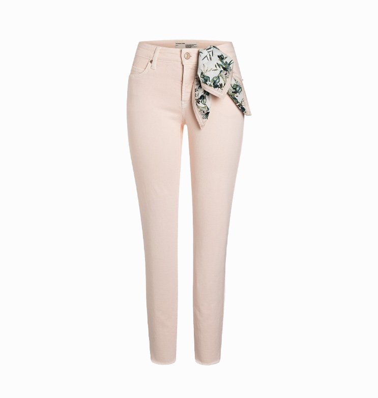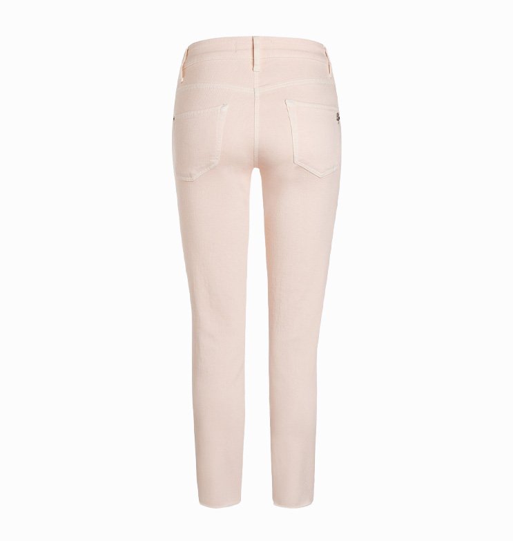 Mot. džinsai, šviesiai rožinės spalvos, 5 kišenių dizainas, užsegimas užtrauktuku saga.