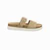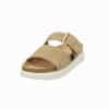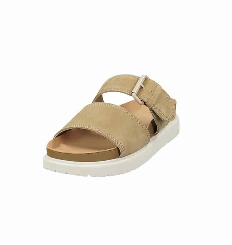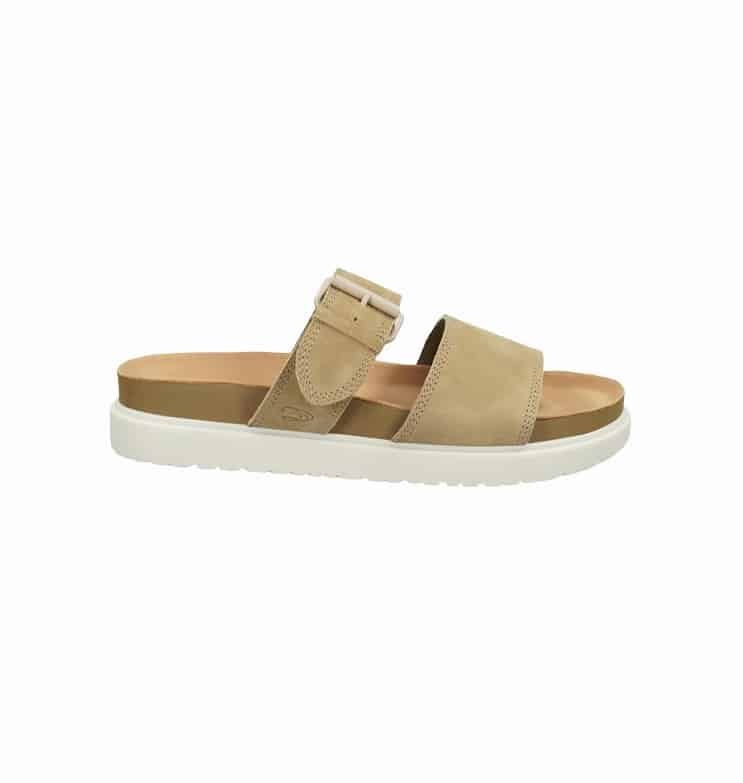 Mot. šlepetės, smėlio spalvos, apvali ir atvira batų noselė, reguliuojama sagtis, plokščias kulnas. Sezonas- Vasara