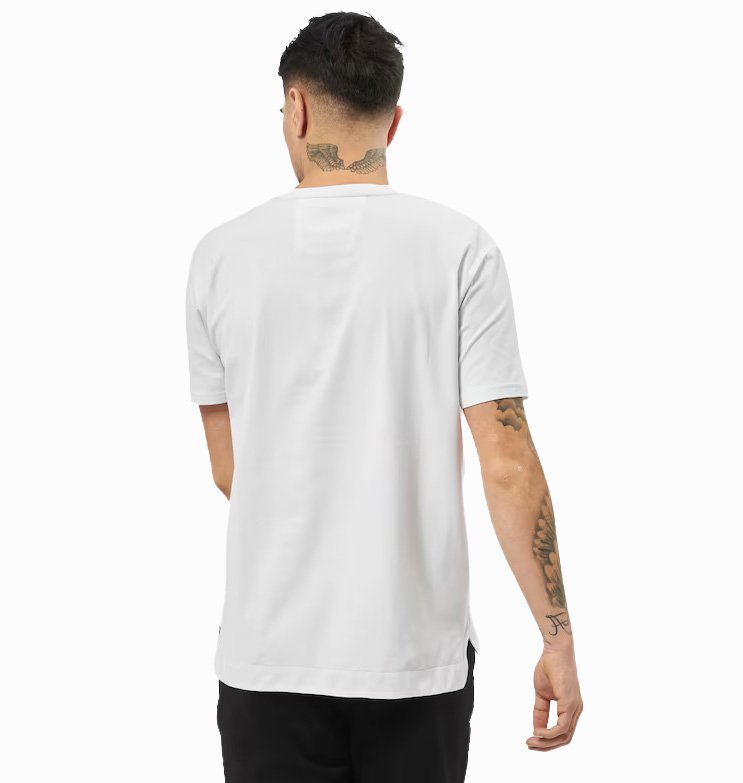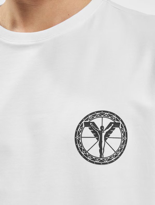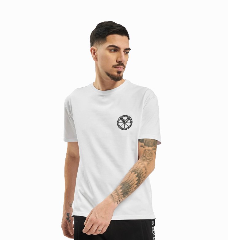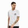 Vyr. marškinėliai, baltos spalvos, trumpomis rankovėmis, apvali kaklo iškirptė.
