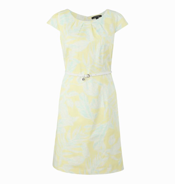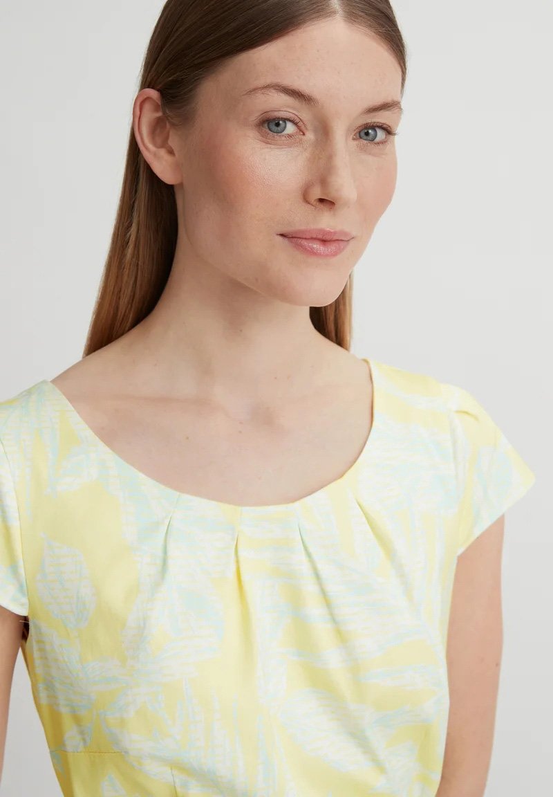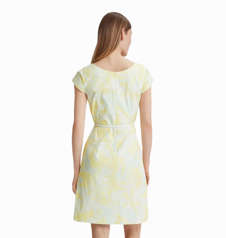 Mot. suknelė, geltonos spalvos, trumpomis rankovėmis, užsegimas užtrauktuku.