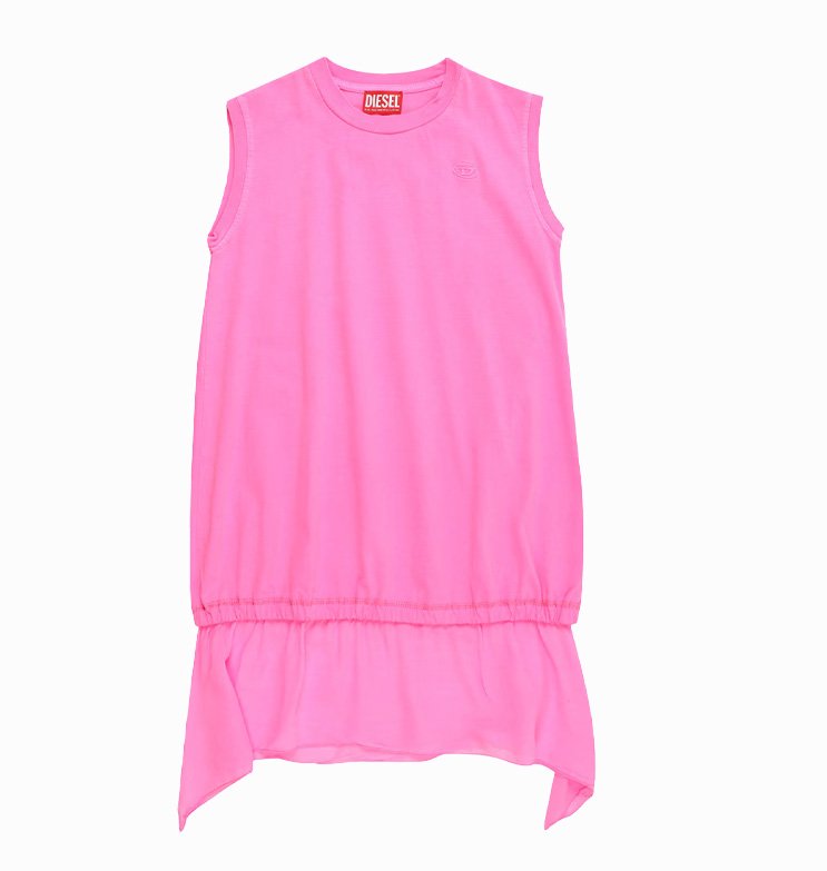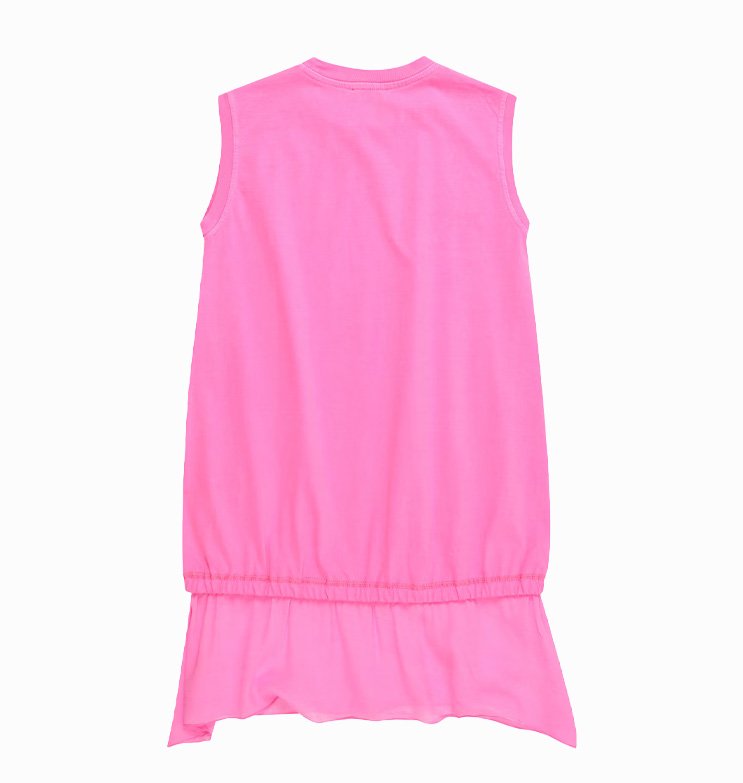Vaik. suknelė, rožinės spalvos, be rankovių, apvali kaklo iškirptė, spausdintas logotipas.