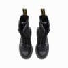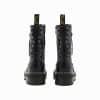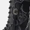 UNISEX Auliniai batai, juodos spalvos, kaubojiško stiliaus, apvali batų nosis, blokuotas kulnas, platforma, užsegimas užtrauktuku, kniedžių apdaila.