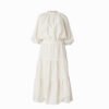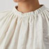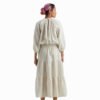 Mot. suknelė, baltos spalvos, ilgomis rankovėmis, stati apykaklė, užsegimas saga, raštas vienspalvis, apatinukas.