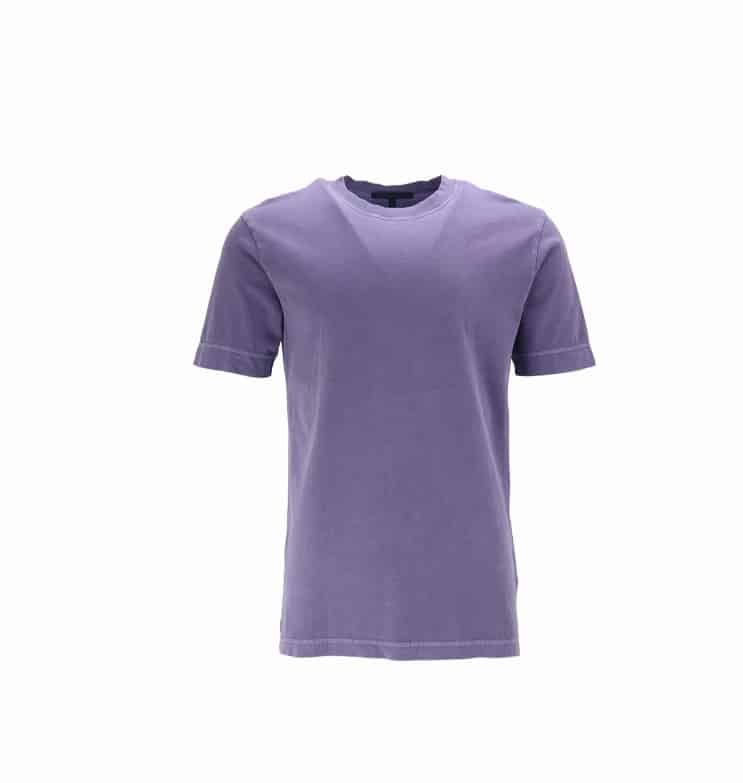 Vyr. marškinėliai, violetinės spalvos, trumpomis rankovėmis, apvali iškirptė.