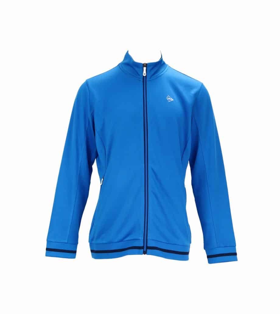 Mot. sportinis švarkelis, mėlynos spalvos, ilgomis rankovėmis, stati apykaklė, užsegimas užtrauktuku, šoninės kišenės.