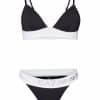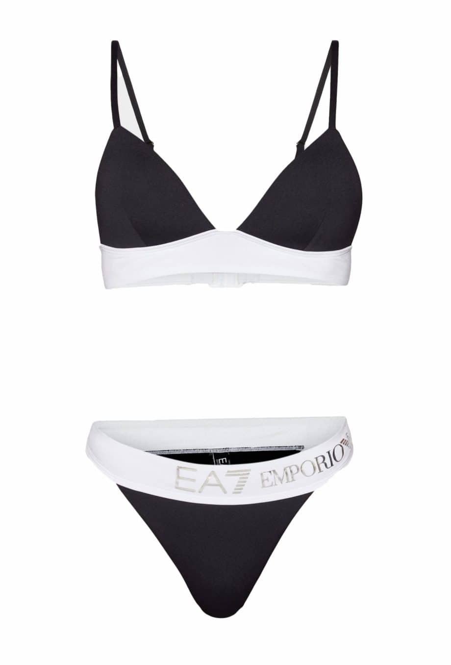 Mot. maudymosi kostiumėlis, juodos spalvos, liemenėlė be lankelių, užsegimas nugaroje, žemo sukirpimo V formos iškirptė, reguliuojami dirželiai, kelnaitės be užsegimo.