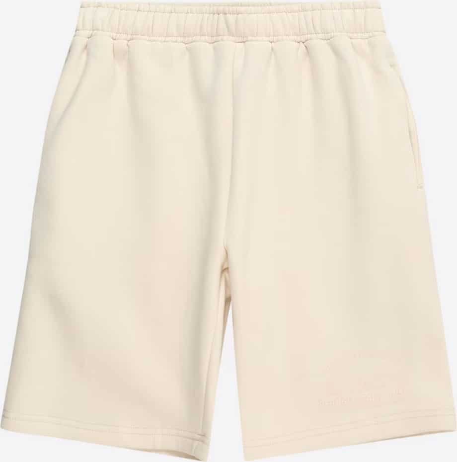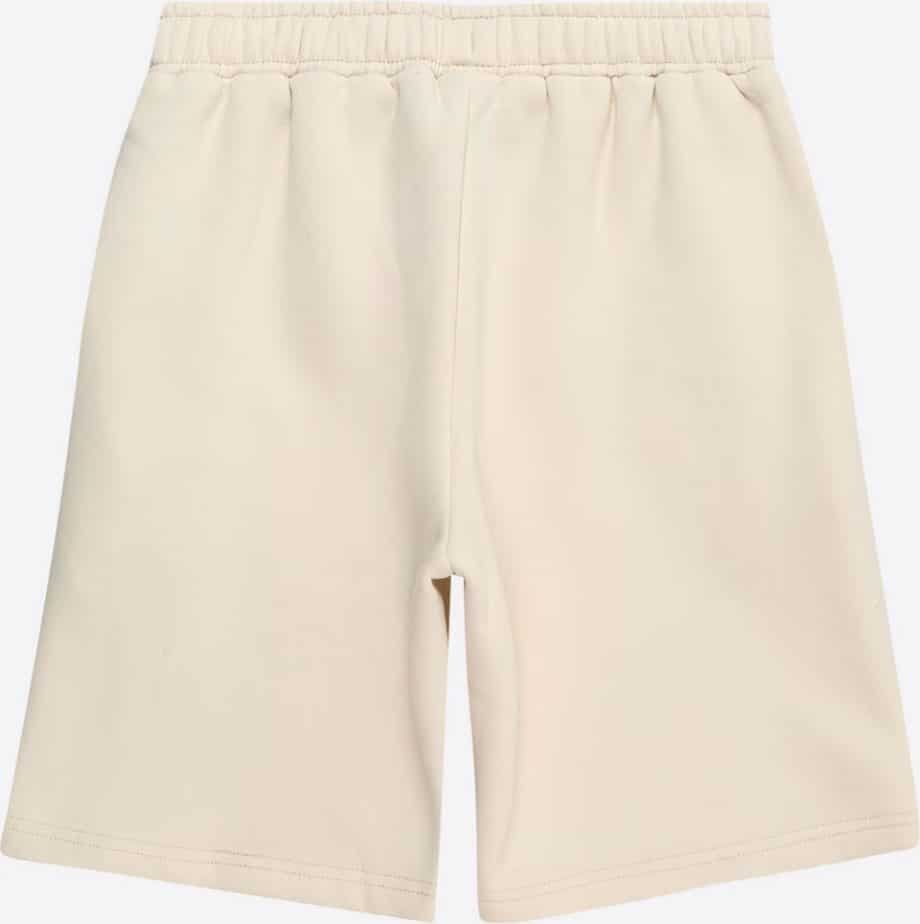 Smėlio spalvos Ellesse vaikiški šortai "Lazzaroi" su spauzdintais logotipais. Treningo medžiaga, minkšta tekstūra. Šoninės kišenės. To paties tono atspalvių siūlė