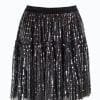 Vaik. sijonas, juodos spalvos, klostuotas, elastingas juosmuo, be užsegimo, puoštas blizgančiom dekoracijom. Dydis-13 years.