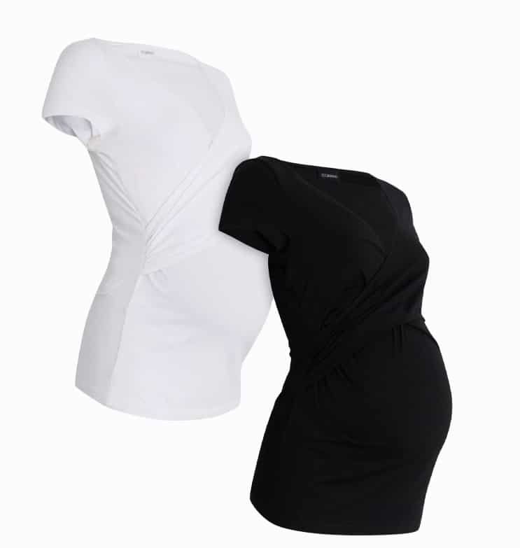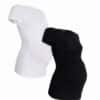 Mot. 2 pack marškinėliai, baltos ir juodos spalvos, trumpomis rankovėmis, V formos iškirptė, raštas vienspalvis.