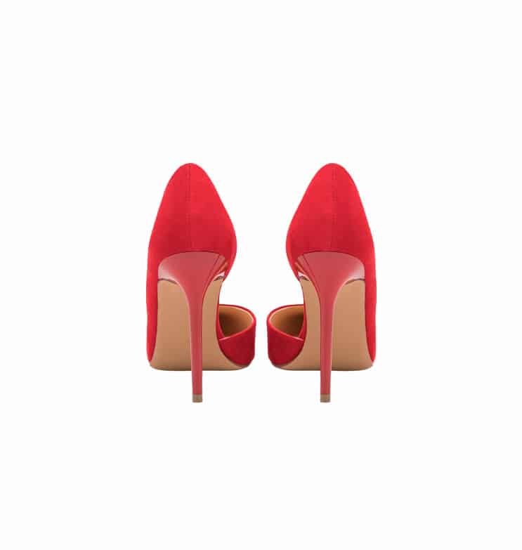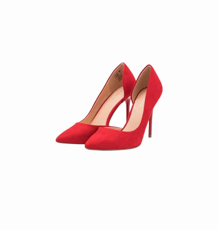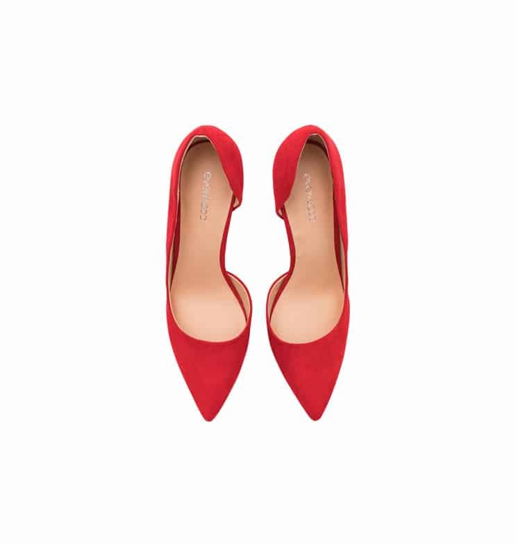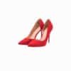 Mot. aukštakulniai bateliai, raudonos spalvos, smaili batų nosis, be užsegimo, stileto kulnas, paprastas spalvos dizainas, zomša.