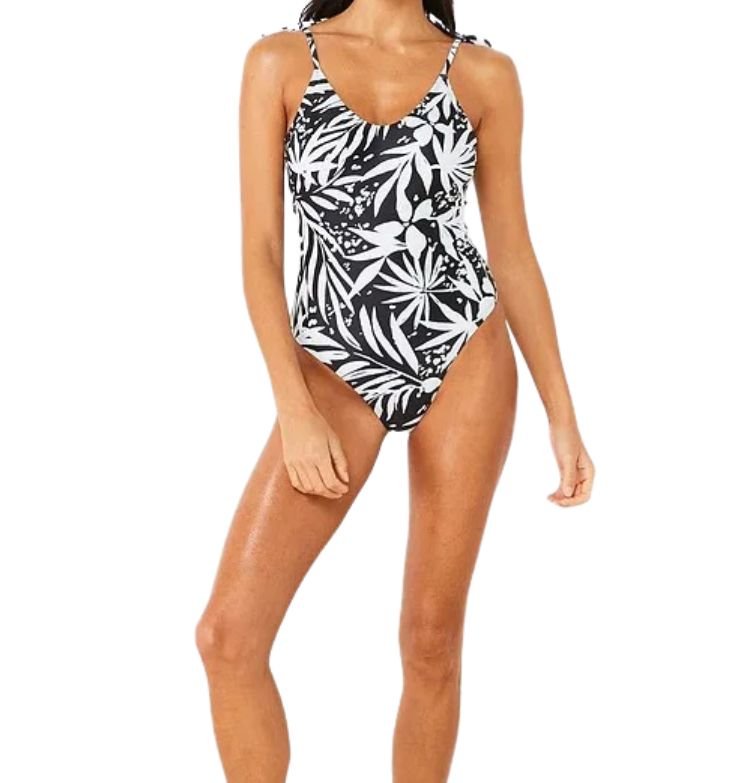 Mot. maudymosi kostiumėlis, juodos/ baltos spalvos, vientisas, spausdintas raštas, raišteliai ant peties.