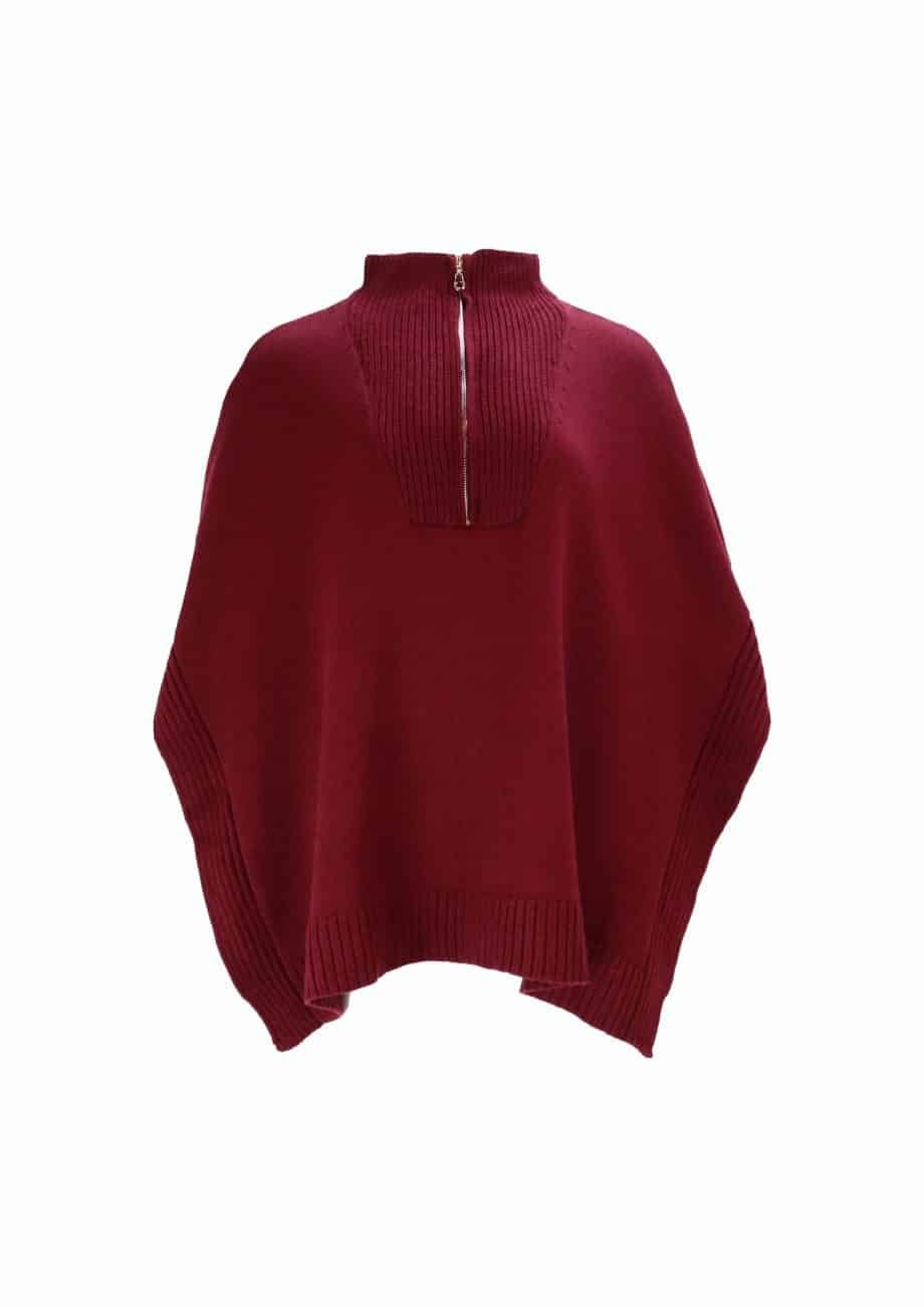 Mot. pončas, vyšninės spalvos, aukšta apykaklė, užtraukiama užtrauktuku, megzto rašto.