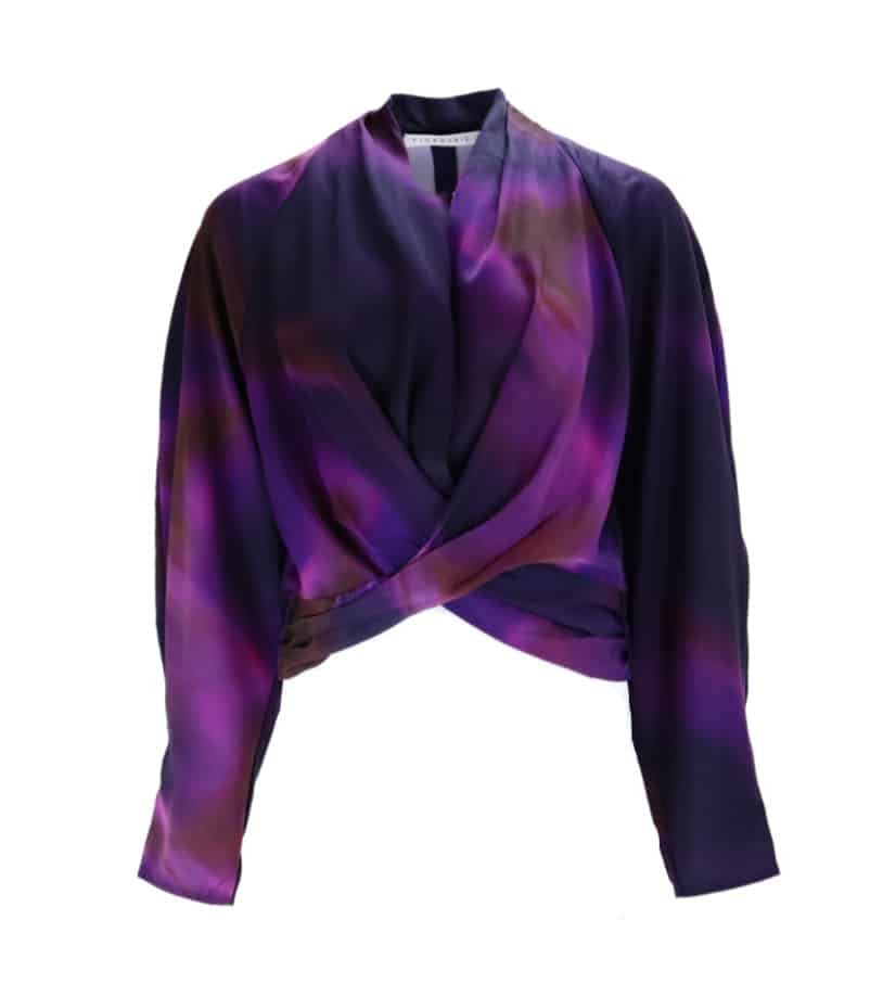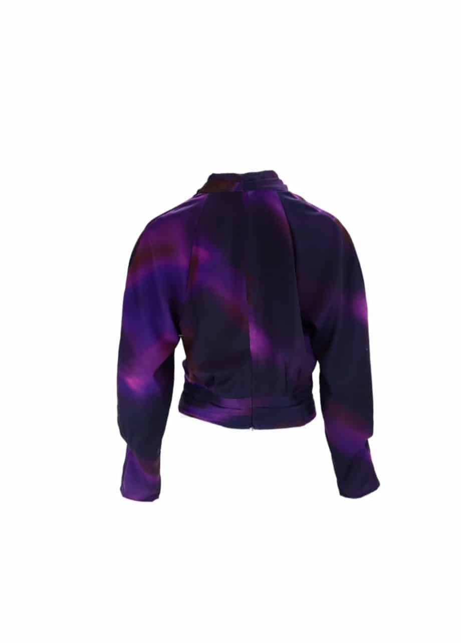 Mot. palaidinė, violetinės spalvos, ilgomis rankovėmis, V formos iškirptė, mini ilgio, užsegimas užtrauktuku- nugaroje.