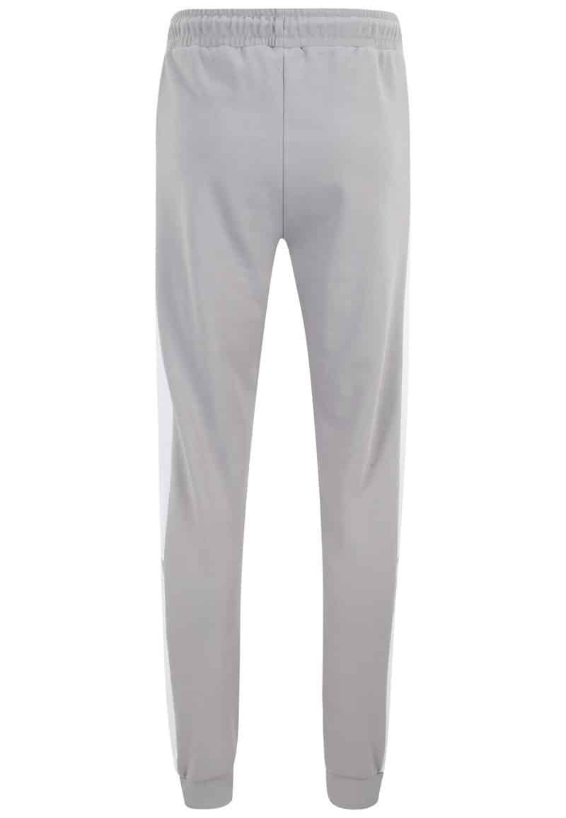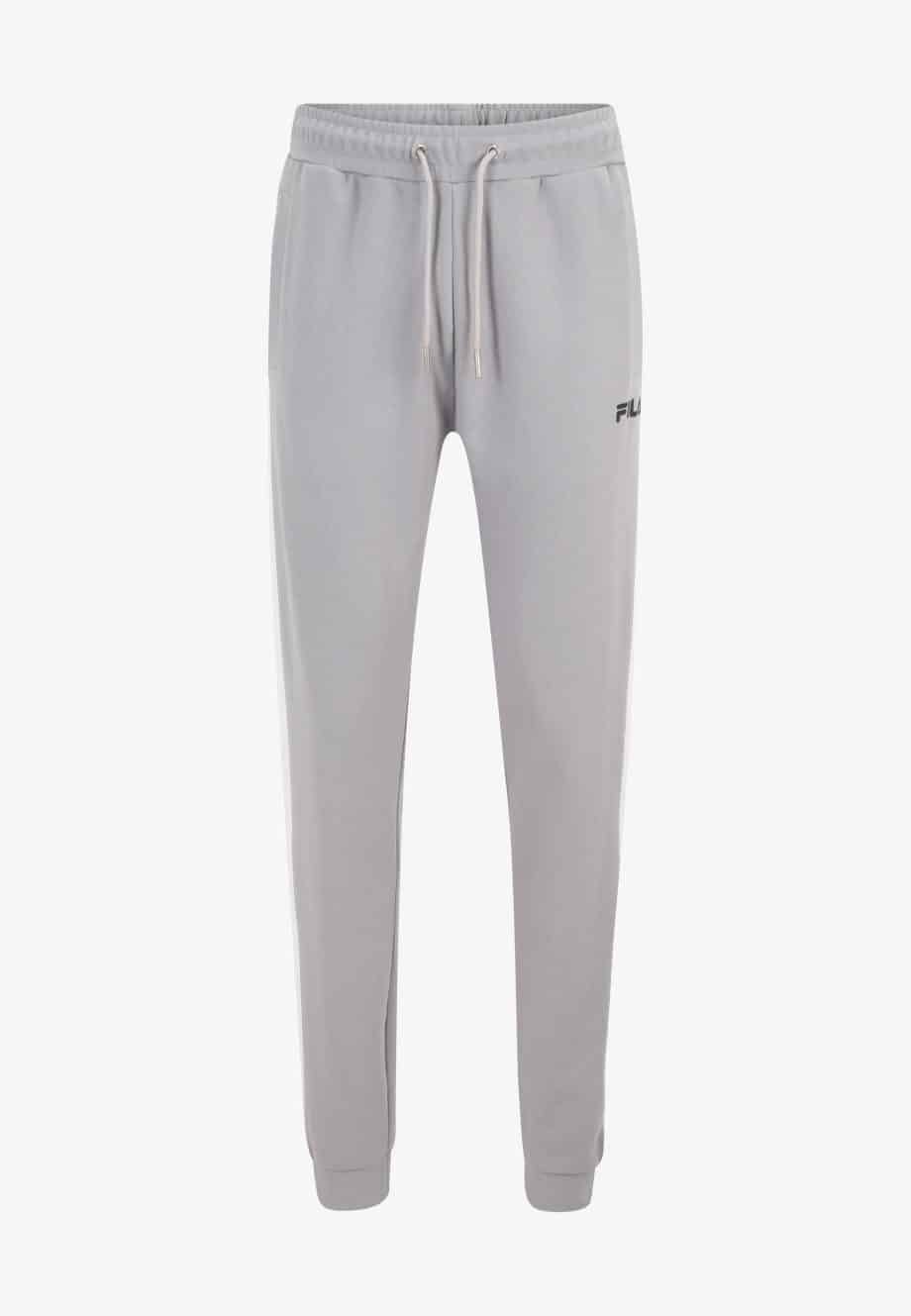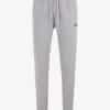 Vyr. sportinės kelnės, pilkos spalvos, siaurėjančio kirpimo, šoninės kišenės, siuvinėtas logotipas, elastinis juosmuo su raišteliais.