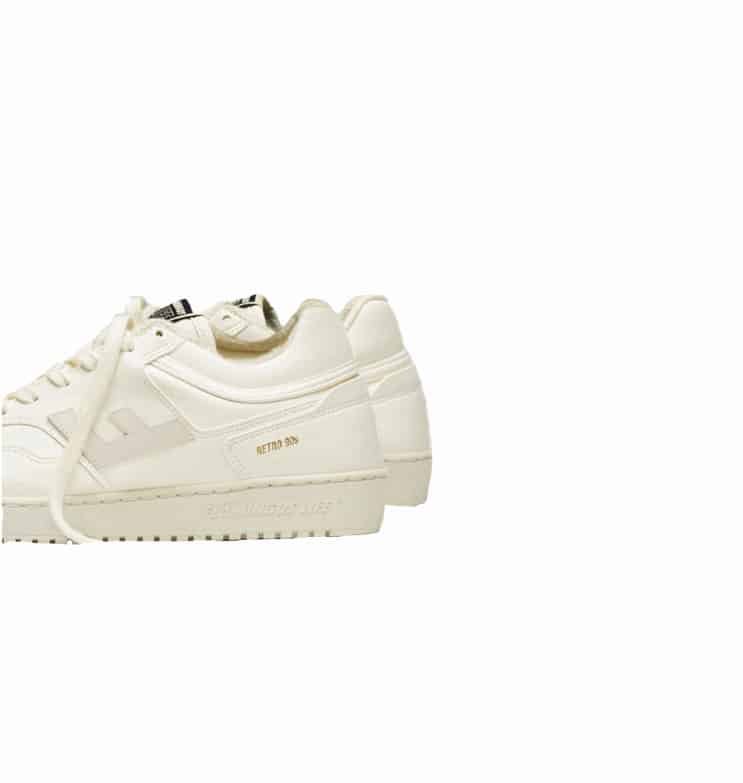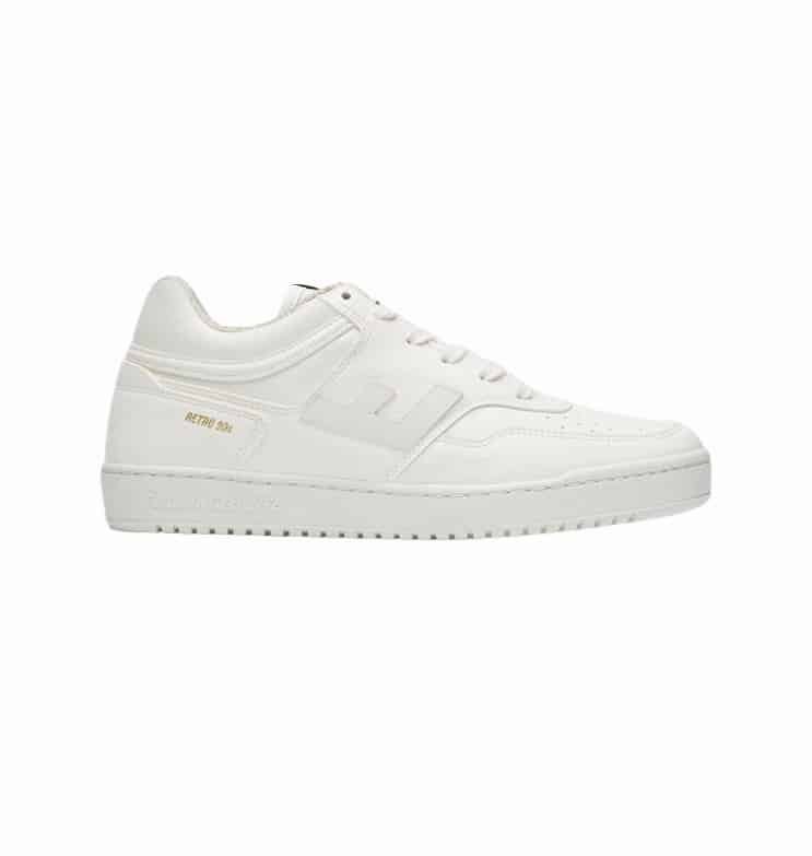 Vyr. sportbačiai, baltos spalvos, su spausdintais logotipais, suapvalinta noselė, 6 eilių suvarstymas, to paties tono atspalvių siūlės, dirbtinė oda, užrišami raišteliais, Retro stiliaus.