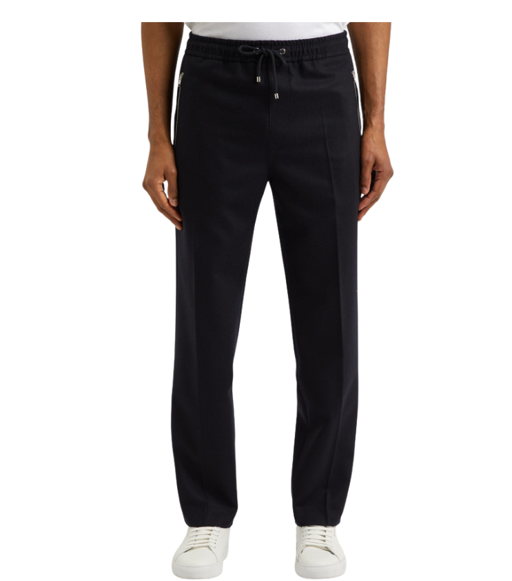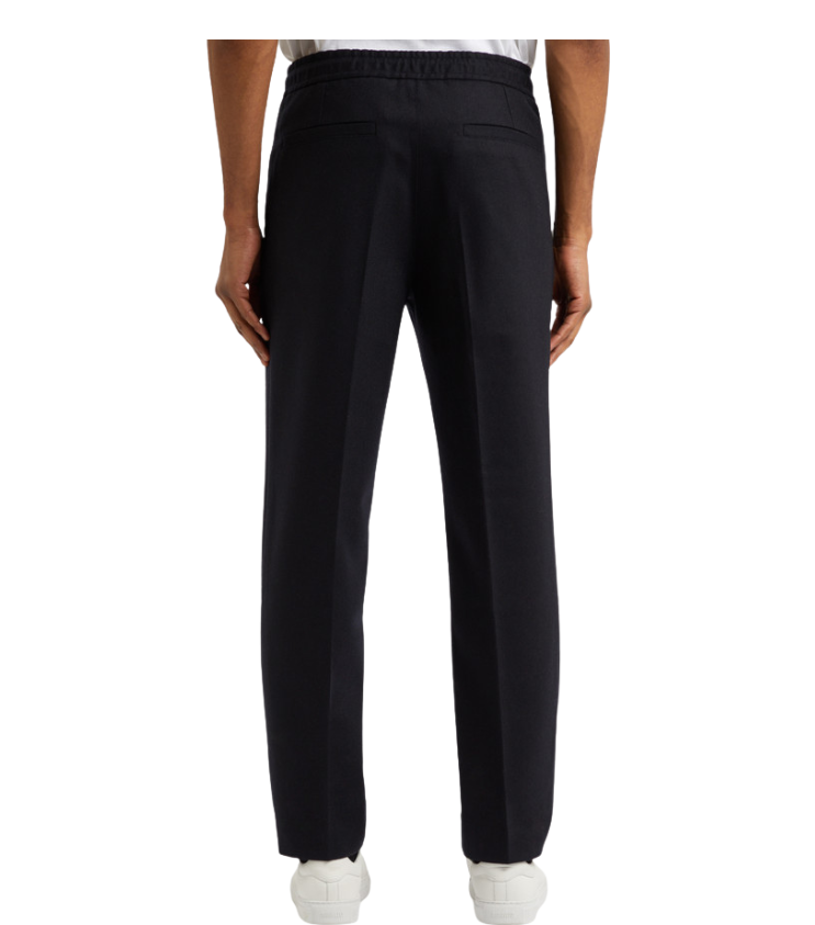Vyr. Kelnės, juodos spalvos, laisvo kirpimo, elastinė juosta, šoninės kišenės su užtrauktuku.