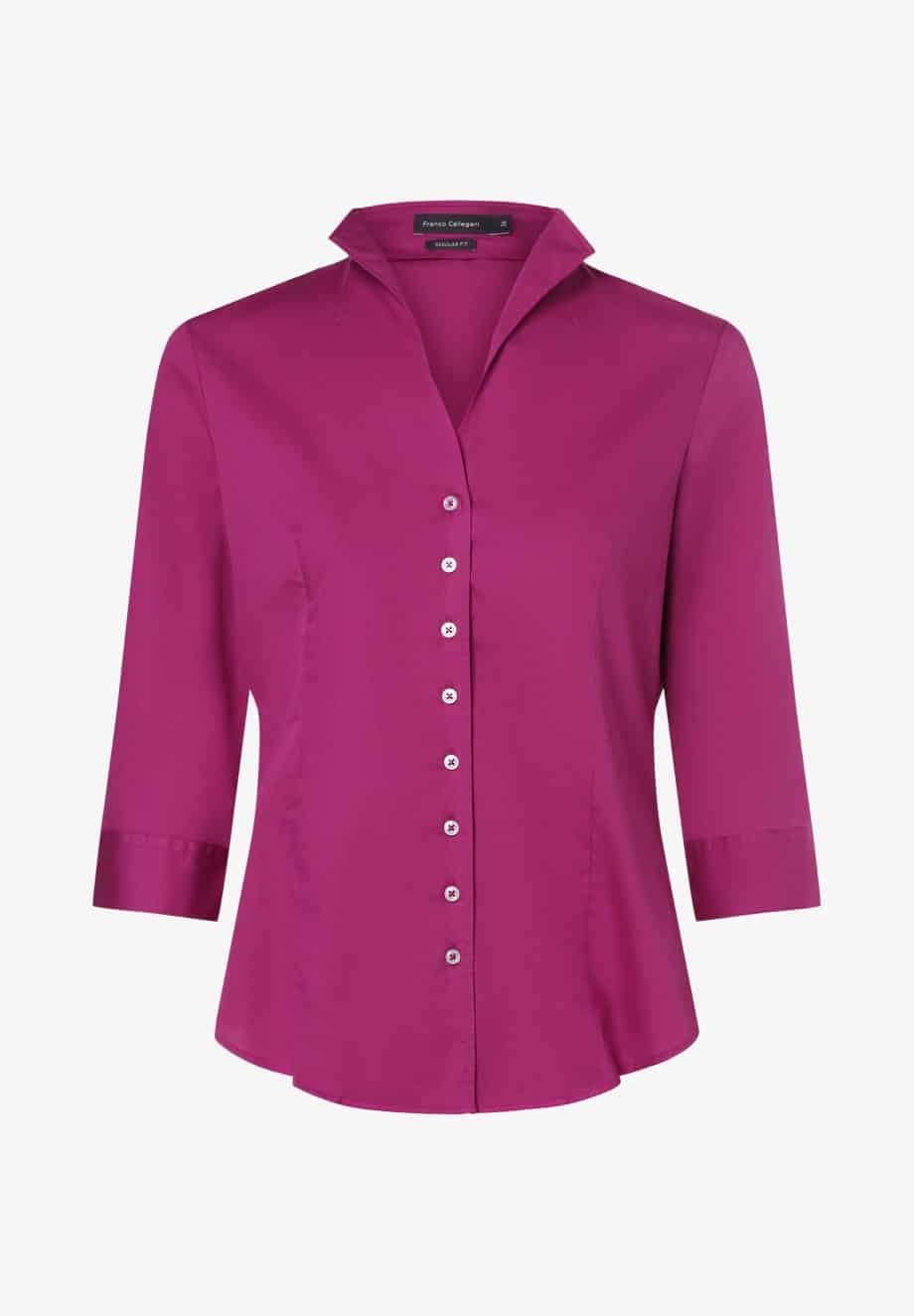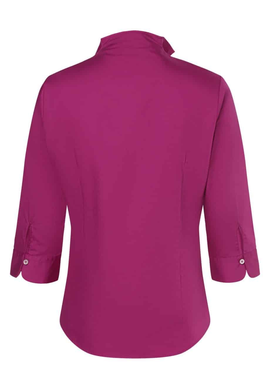Mot. marškiniai, rožinės spalvos, 3/4 rankovės, užsegimas sagomis, V formos iškirptė, marškinių apykaklė, tiesaus kirpimo, klasikinio stiliaus.