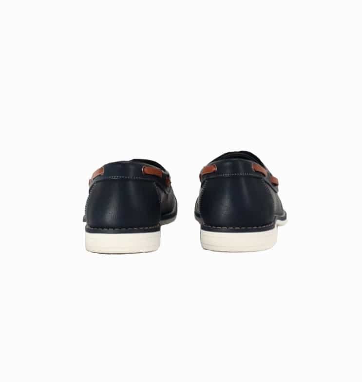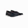 Vyr. loaferiai, tamsiai mėlynos spalvos, apvali batų nosis, be užsegimo, elastinės rudos juostelės.