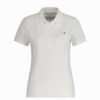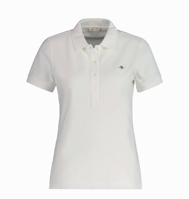 Mot. marškinėliai, baltos spalvos, trumpomis rankovėmis, Polo stiliaus apykaklė, tiesus kirpimas.