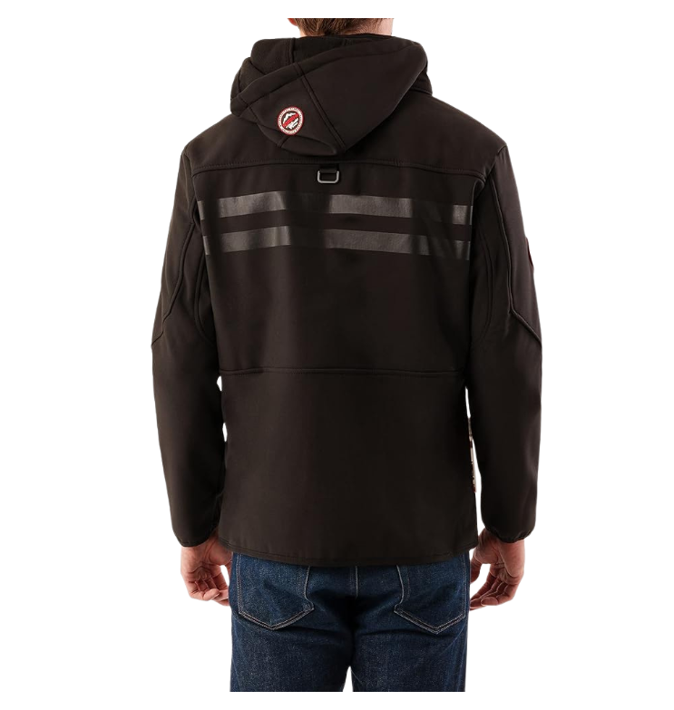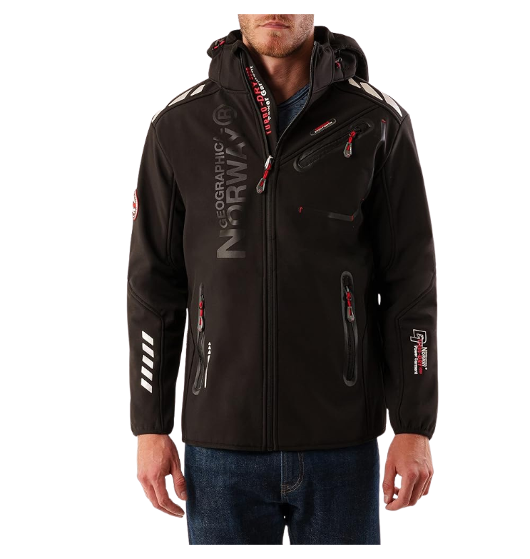 Vyr. striukė, juodos spalvos, ilgomis rankovėmis, užsegimas užtrauktuku, šoninės kišenės, nuimamas gobtuvas, atspari vėjui.