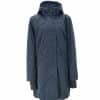 Mot. striukė, tamsiai mėlynos spalvos, tiesaus kirpimo, su gaubtuvu, užsegimas užtrauktuku ir sagutėmis, kišenės,neperpučiama vėjo, atspari vandeniui.