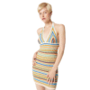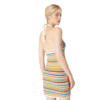Mot. suknelė, spalvota, be rankovių, gili V formos iškirptė, atvira nugara, megztas raštas.