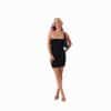Mot. suknelė, juodos spalvos, trumpo ilgio, tampri medžiaga, minimalistinis dizainas, be užsegimo.