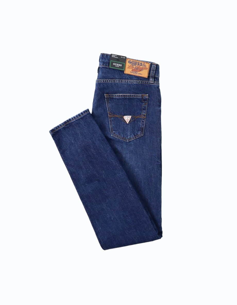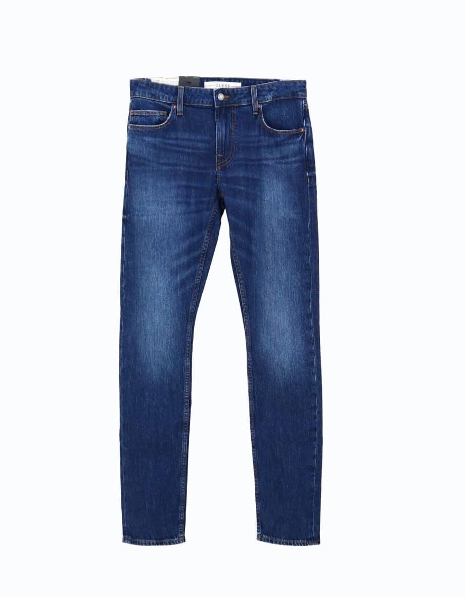 Vyr. džinsai, tamsios mėlynos spalvos, siaurėjančio kirpimo, vidutinis juosmuo, užsegimas užtrauktuku ir saga, 5 kišenių dizainas.