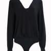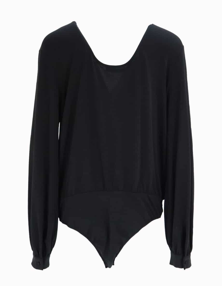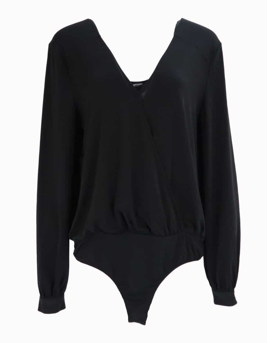Mot. glaustinukė, juodos spalvos, ilgomis rankovėmis, gili V formos iškirptė, užsegimas apačioje.