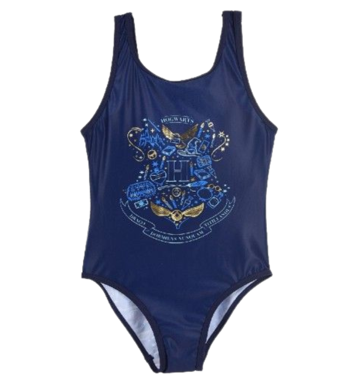 Vaikiškas, mėlynos spalvos , maudymo kostiumas. Su Harry Poteriu spauzdinda aplikacija.