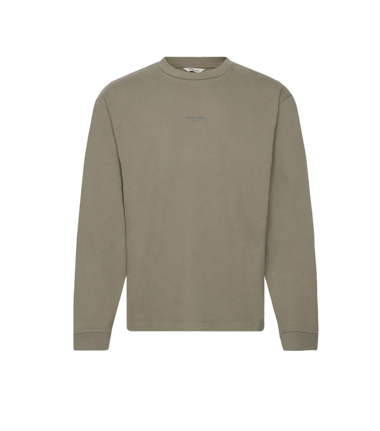Vyr. džemperis, chaki spalvos, ilgomis rankovėmis, laisvo kirpimo, apvalus kaklas, elastingas juosmuo.