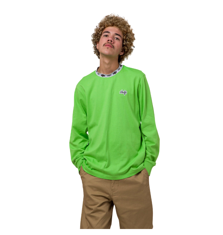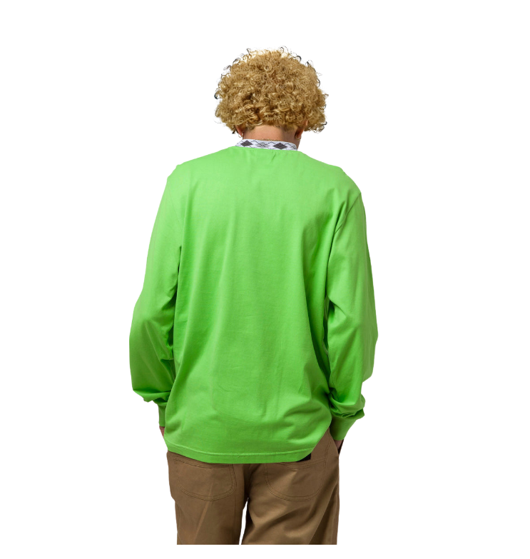 Vyr. marškinėliai ilgomis rankovėmis, žalios spalvos, apvali kaklo iškirptė, siuvinėtas logotipas.